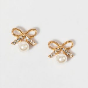 Pearl On A Bow Stud Earrings